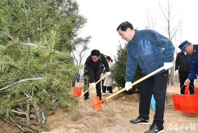 市委常委,市人大常委会、市政府、市政协领导班子成员,市法检“两长”,以及鹿泉区四大班子主要负责同志等一同参加义务植树活动。(记者 齐广君)