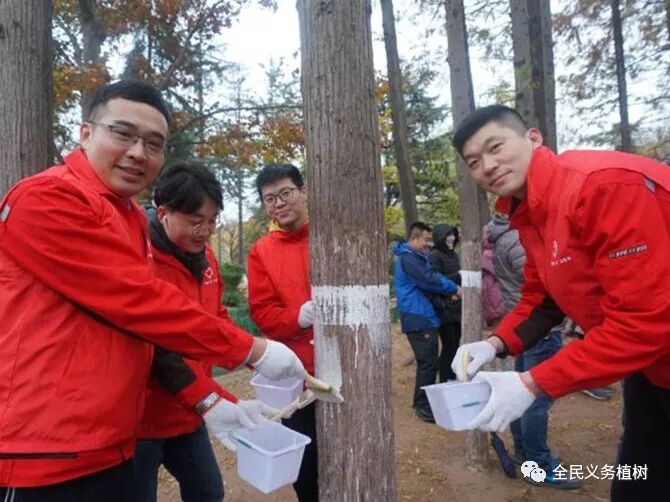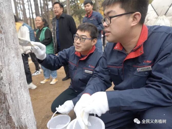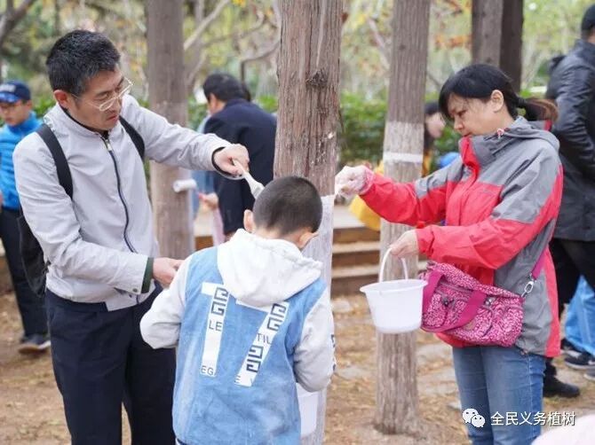 11月24日上午, 由青岛市绿化委员会、青岛市园林和林业局、市北区城市管理局主办,市北绿化总公司和市园林林业技术学校承办的“冬季义务涂树周”在市北区榉林山公园举行。涂白是义务植树“抚育管护类”尽责形式,因此该活动也是本市“互联网+全民义务植树”活动内容之一。当天,气温骤降,寒风冬雨突袭,可依然没有减少市民参与义务植树的热情。虽然面向社会征集80名志愿者,可活动现场却赶来了200多名市民。