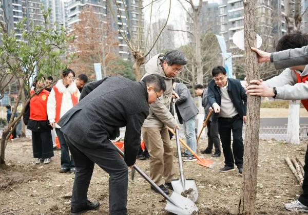 在活动现场,多位“老朋友”们与医院领导、医生护士们一起手持铁锹、锄头、扫帚等工具,俯身清理园内杂草,细致翻整土地,共同栽下银杏槐树、厚朴、女贞子、山茱萸、玉兰、合欢、南方红豆杉、常山胡柚、杜、威灵仙等兼具观赏性与药用价值的中药材树苗。