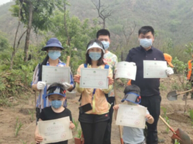 上午10点,参加活动的家长带领孩子们准时到达植树现场,在工作人员的指导下,大家以家庭为单位分工协作,忙得不亦乐乎。最后孩子们细心地为新栽的幼苗浇水,期盼种下的小树能够茁壮成长。经过大家的辛勤劳动,一排排新栽下的树苗错落有致、昂然挺立,在微风中展现出勃勃生机。